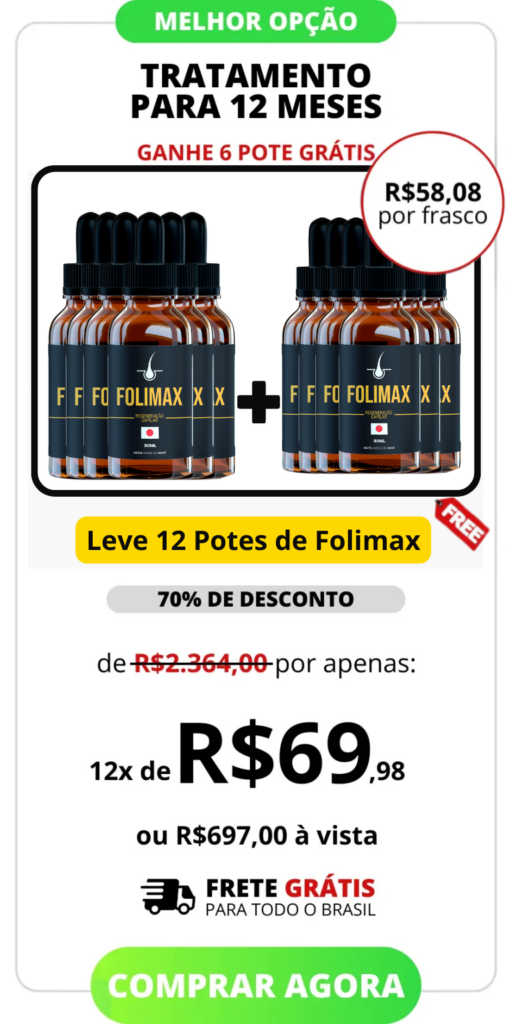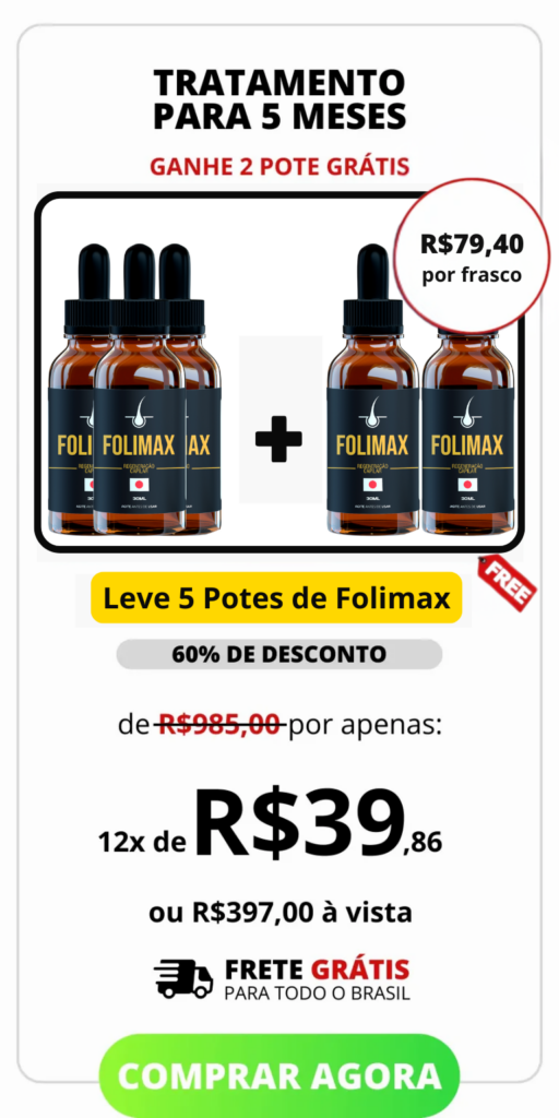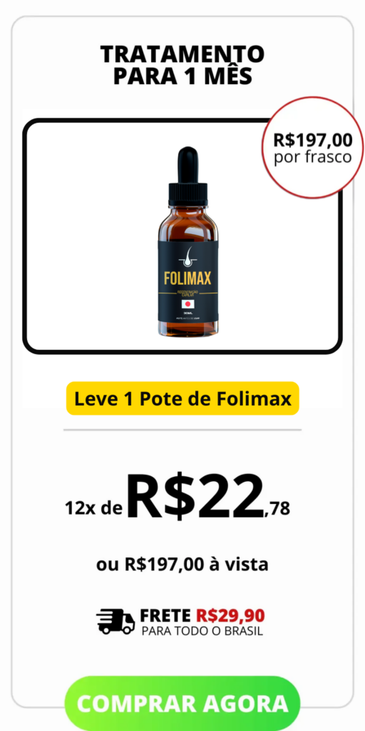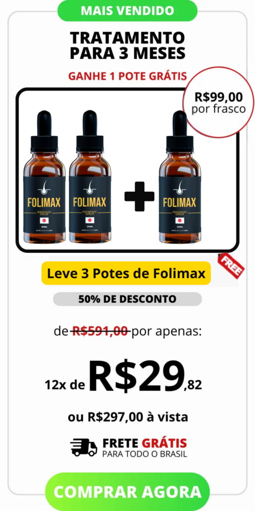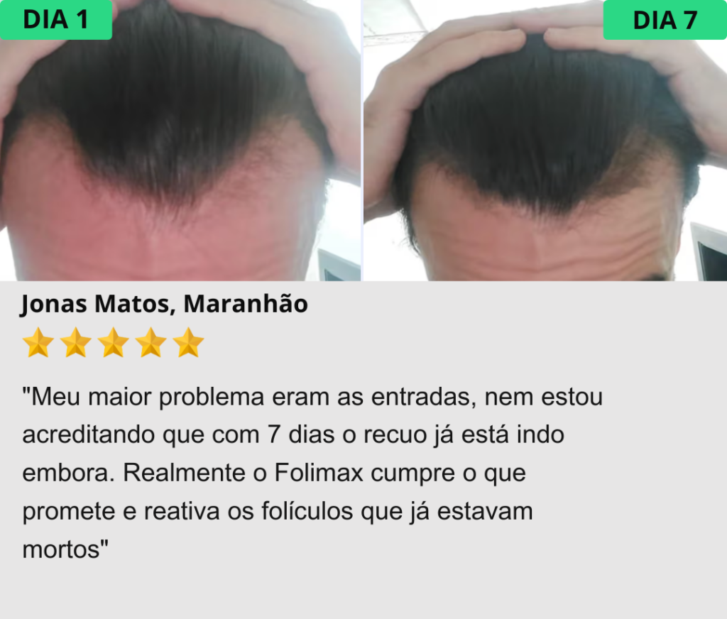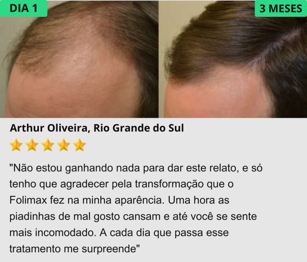 "Com resultados impressionantes, esse avanço redefine o tratamento para Calvície, conforme destacado por nossa equipe. Sem complicações ou efeitos colaterais. Recupere seus cabelos com a tecnologia avançada do FOLIMAX. Retome sua autoestima hoje mesmo, como foi anunciado por nossa equipe de televisão."